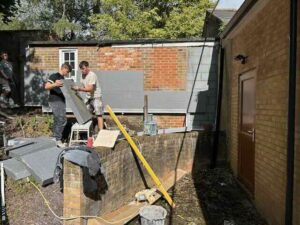 Started the external wall insulation, this is around the back of the hall, where few dare to venture….